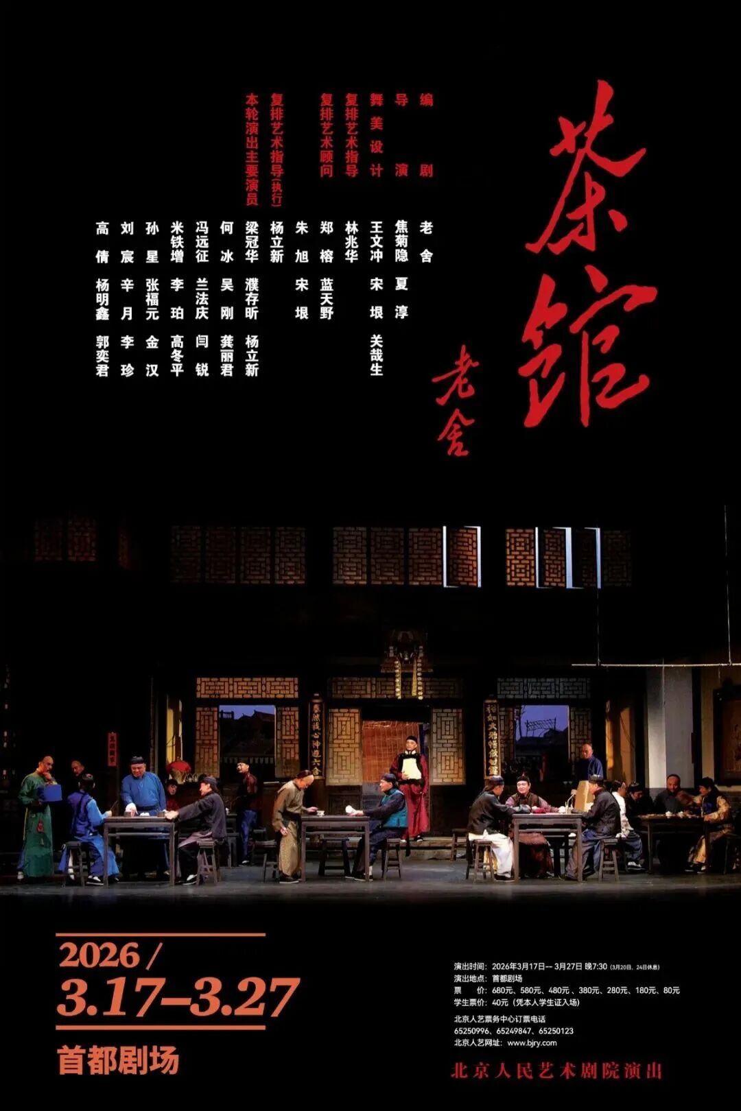 《茶馆》自1958年在首都剧场首演后,成为中国话剧的保留剧目,曾多次出国演出,享有国际声誉。它不仅是老舍的代表作,也被视为中国现实主义话剧的巅峰之一,被誉为“东方舞台上的奇迹”。