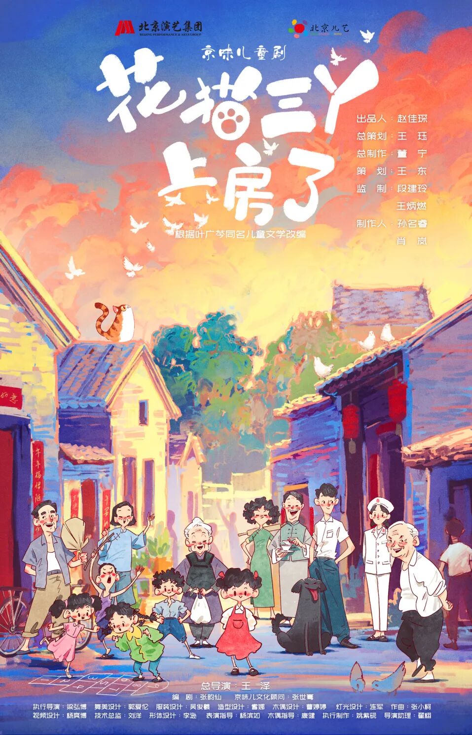 儿童剧《花猫三丫上房了》改编自著名“京味儿”作家叶广芩的同名原著,延续了书中欢乐浪漫又温暖的故事精髓,以大量风趣幽默的“京味儿”对话、京腔京韵的老童谣、“京味儿”风俗传说呈现颇具“胡同特色”的百姓生活日常,用散文诗般温情的方式展现立体的“京味儿”生活画卷。