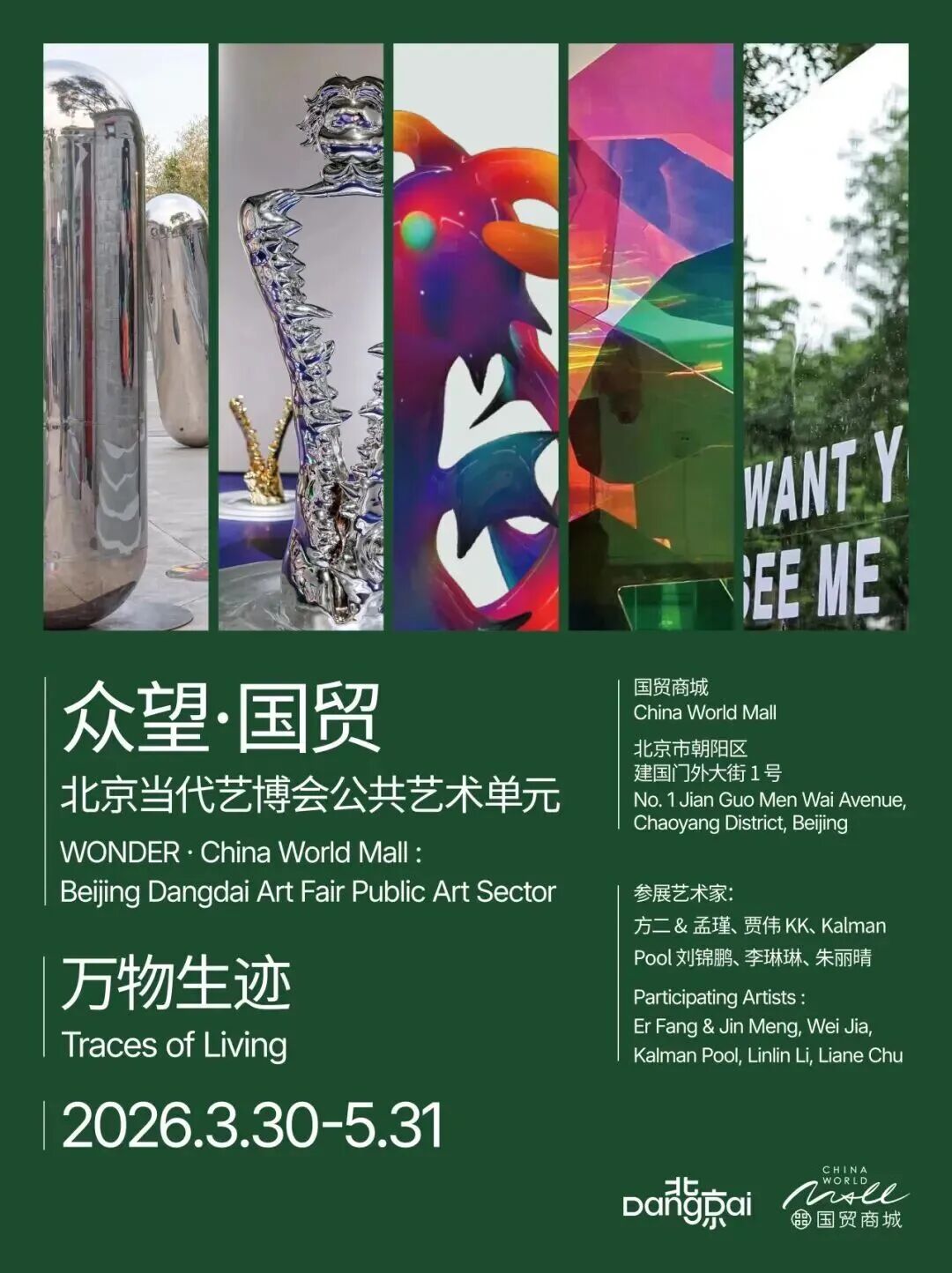 3月30日至5月31日国贸商城联合北京当代艺术博览会共同发起并呈现“众望·国贸:北京当代艺博会公共艺术单元”,此次合作以公共艺术节的形式在国贸商城不同空间点位陆续呈现多位艺术家的代表作品。