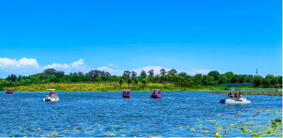 南苑森林湿地公园上林湖游船开航啦,船行碧波,望东土山畔,燕景台凌空而起,偶遇“泡子湿地”的鹭影翩跹,感受“南囿春风”的千年风韵。