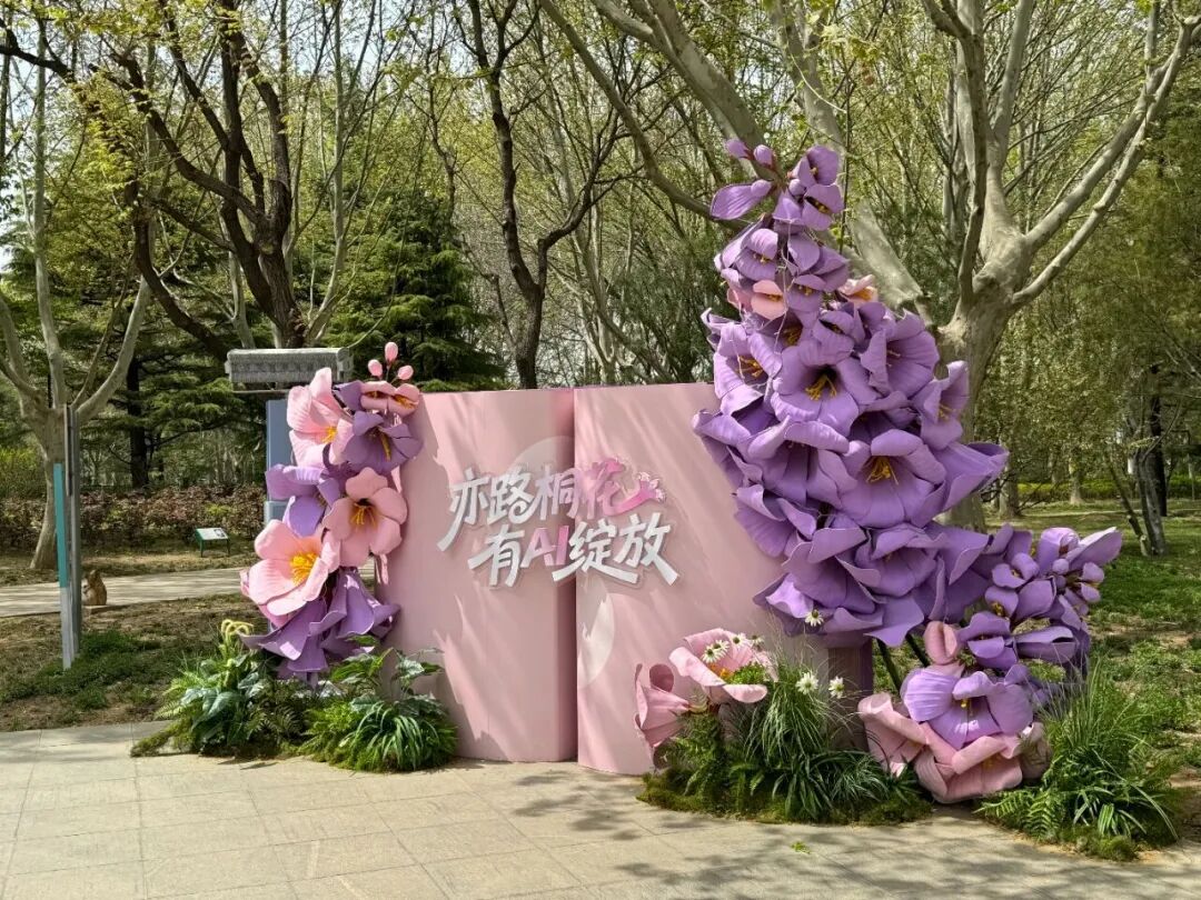4月10日,“亦路桐花 有AI绽放——花开北京·2026泡桐花季”启幕,博大公园内设立了几处巨型泡桐花观赏点,是静谧赏景的绝佳去处。