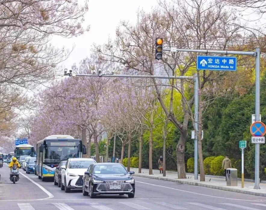 当四月的风拂过北京亦庄的街角,泡桐树便如约苏醒,沿着宏达北路、宏达中路绵延数公里,撑起一片连绵的紫色穹顶,北京亦庄瞬时变为浪漫花海。