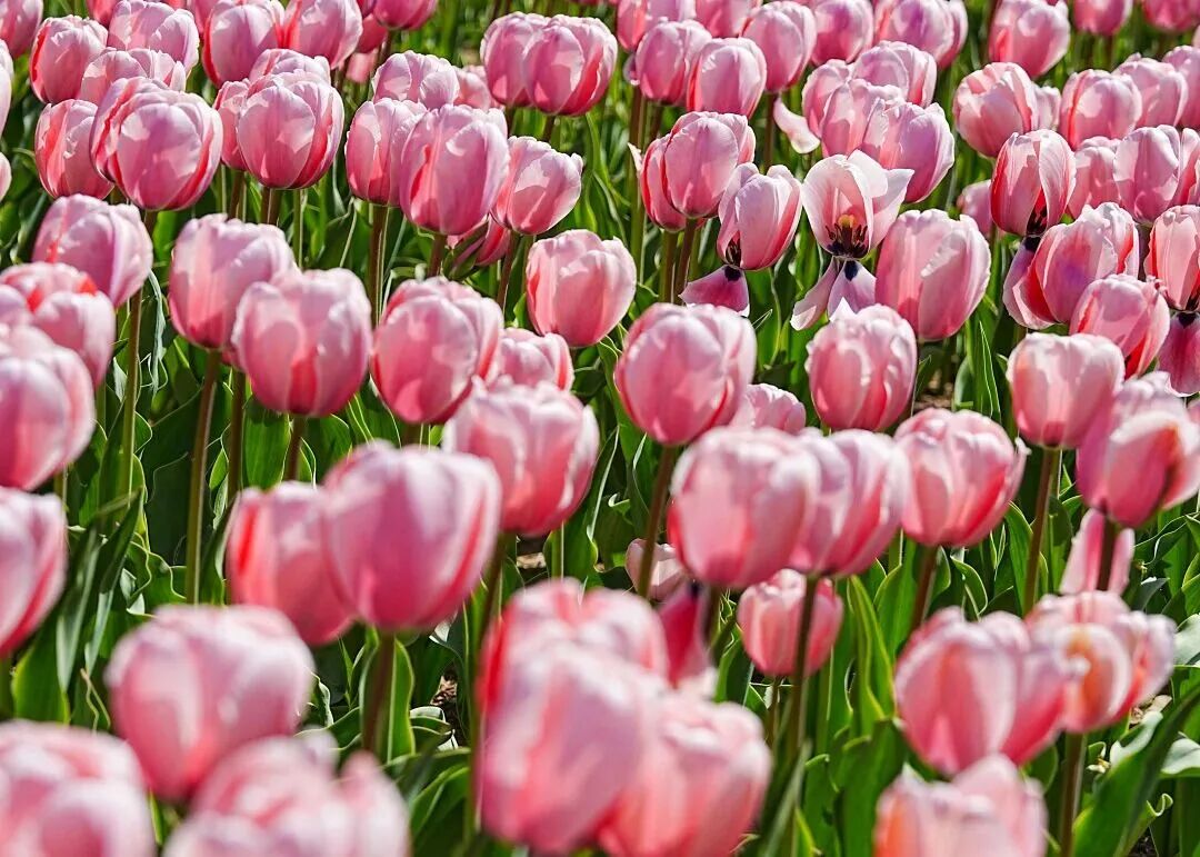 红、黄、粉、橙、白……10余个品种5万余株的郁金香,共同绽放,宛若油画。