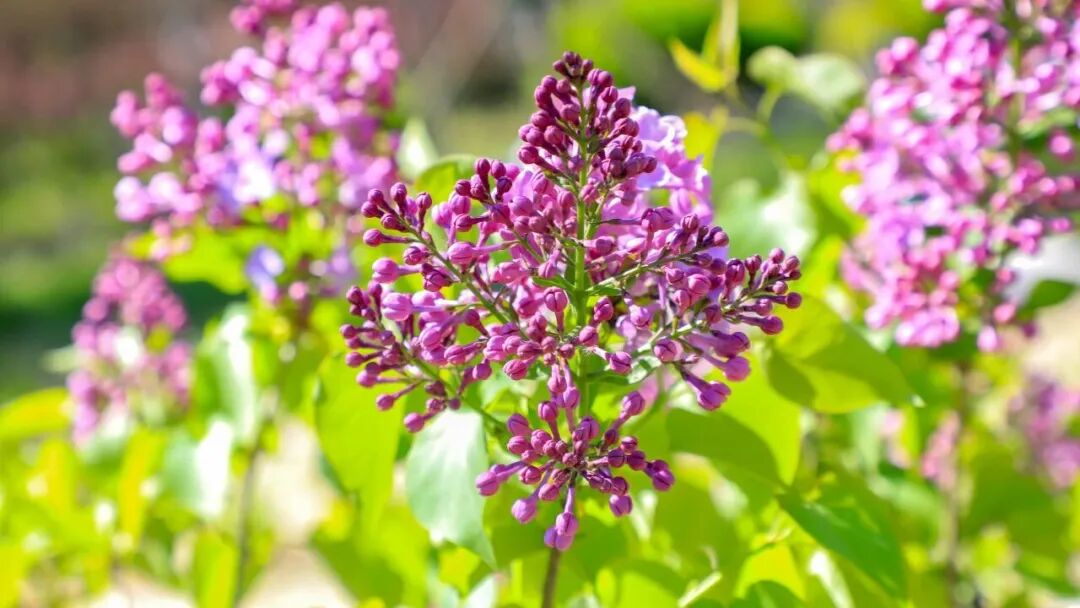 庆丰公园的丁香是朝阳区“一园一花一品”建设的重点工程之一,33品种、8大色系,近50000株丁香沿着谷地和花篱铺开,其中2000株组成丁香群落,更有1900平米、约47500株的丁香花篱绵延成景,香气绵延不绝。