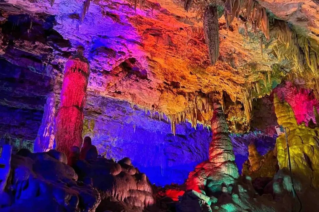 15亿年的地质奇观,洞内钟乳石千姿百态,擎天玉柱、龙绘天书......灯光一打,氛围感直接拉满,而且恒温16℃,四季都好逛~