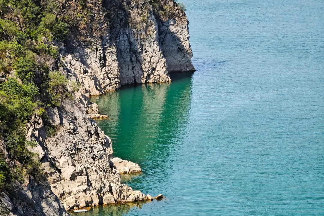 名不虚传,山体像锯齿一样扎进湖里,远眺湖光塔,天水一色,断崖+湖景同框,怎么拍都出片。