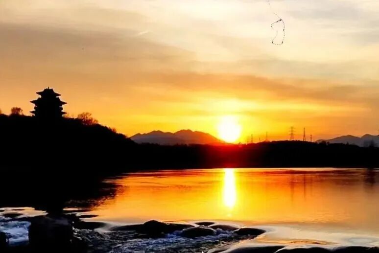 喜欢拍落日的朋友,不要错过园博园永定河畔的宝藏机位,日暮时分永定河化身绝美“橘子海”,当车流在暮色里拉出温柔的光轨,文昌阁的剪影稳稳落在永定河金色的水面上。