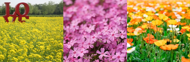 四月的紫谷伊甸园,是被花神打翻的调色盘,冰岛虞美人摇曳着半透明的花瓣,如彩绸般轻盈油菜花用最灿烂的金黄铺开春日底色,二月兰在林间织就一片梦幻的紫雾,而芝樱花则紧贴大地,绽出绵延的彩色地毯,每一步,都踩在春天的诗意里。